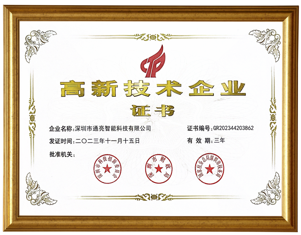 Recently, in accordance with the relevant provisions of the “Administrative Measures for the Recognition of High-Tech Enterprises” and the “Guidelines for the Management of High-Tech Enterprise Recognition”, Shenzhen Tongliang Intelligent Technology Co., Ltd. has successfully passed the evaluation process for recognition as a “National High-Tech Enterprise.” This involved a rigorous assessment, including the company application, local preliminary review, and expert evaluation.