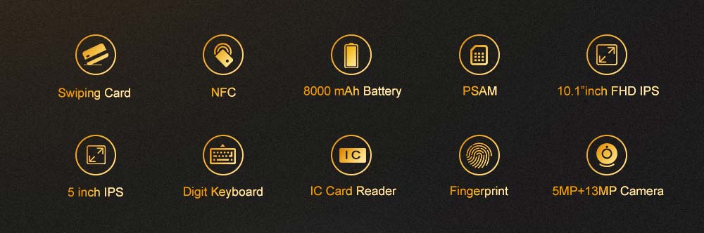 | Financial module | Fingerprint module collection, Magnetic card, Contact IC card,NFC card, Password Keyboard |