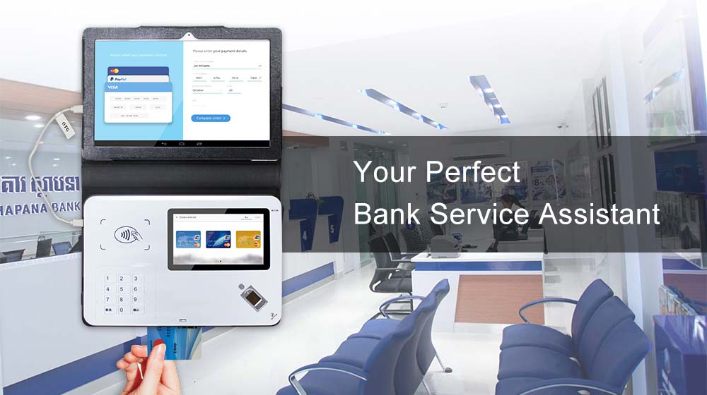 NB05B all-in-one mobile office intelligent bank terminal contact with 10.1 inch tablet by bluetooth.
