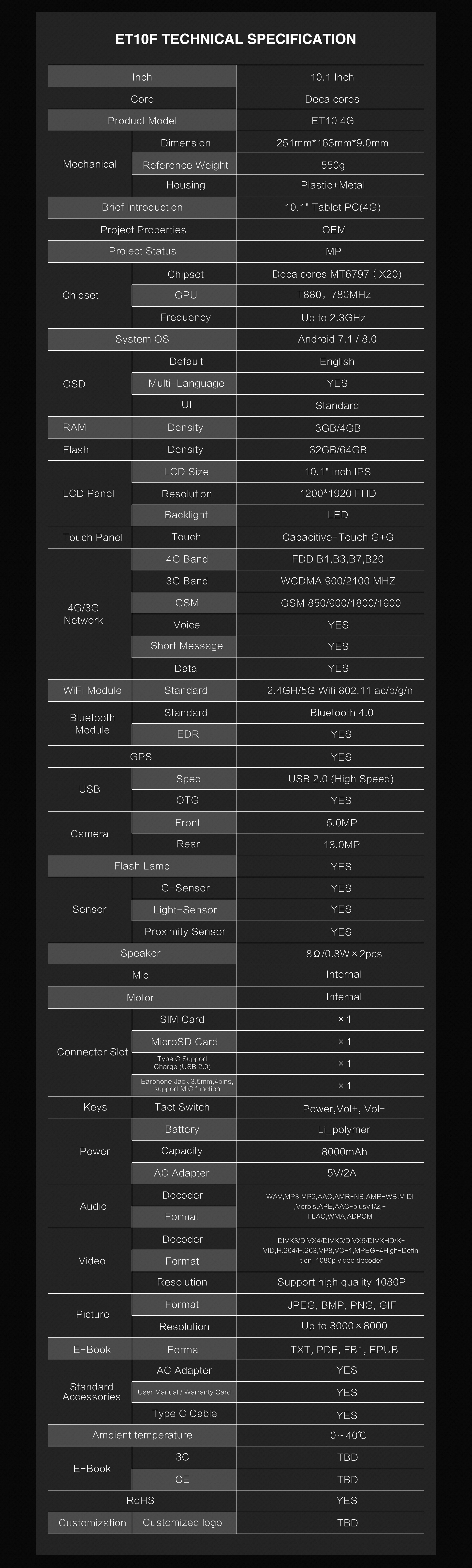 | CPU | MTK,Deca-core,Up to 2.5GHz |