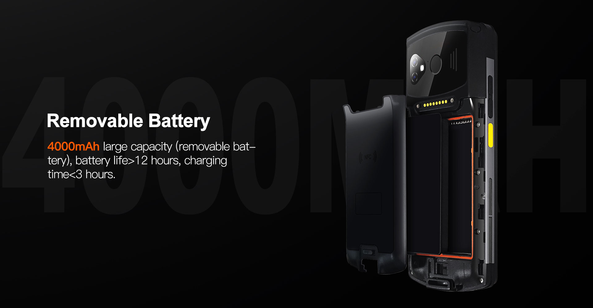 7. Large 4000mAh rechargeable battery.